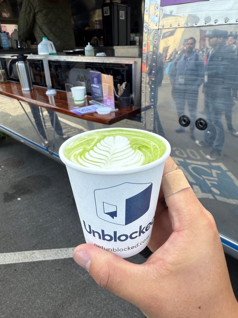 One of the benefits of big enterprise events like this is that they have specialized beverage stands. Here's the juice and matcha latte I got from the drink trucks!